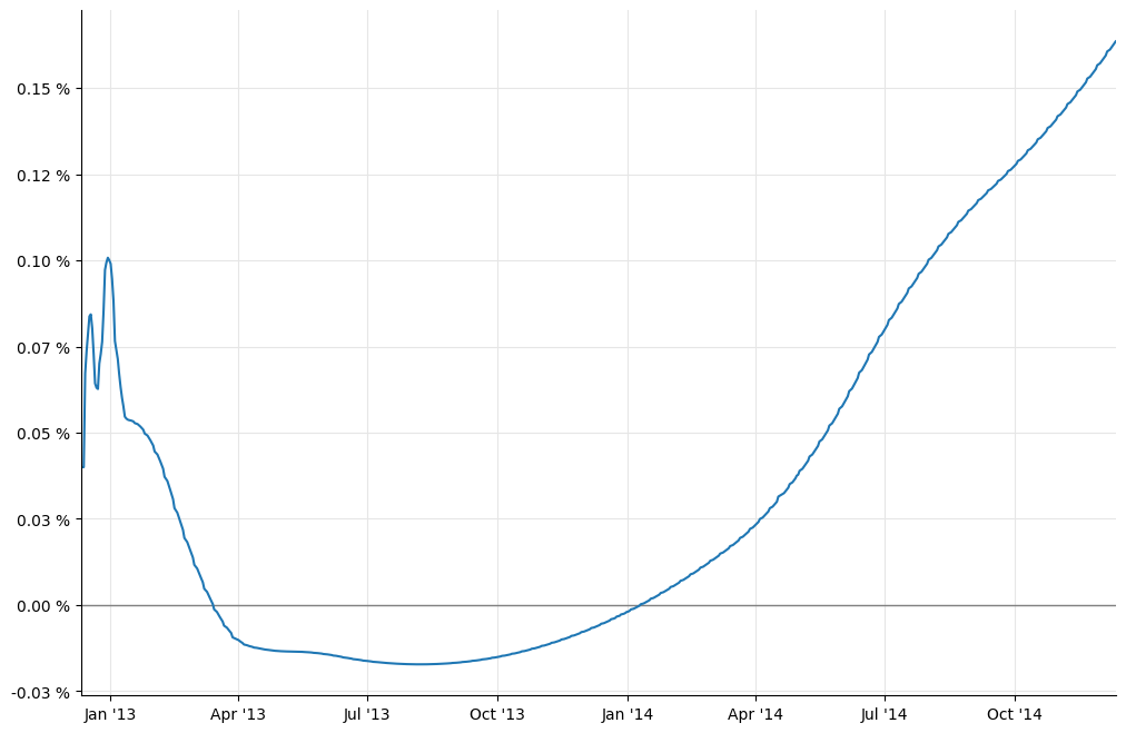 However, we still have work to do. Out plot above shows a rather large bump at the end of 2012 which is not present in the paper. To remove it, we need to model properly the turn-of-year effect.