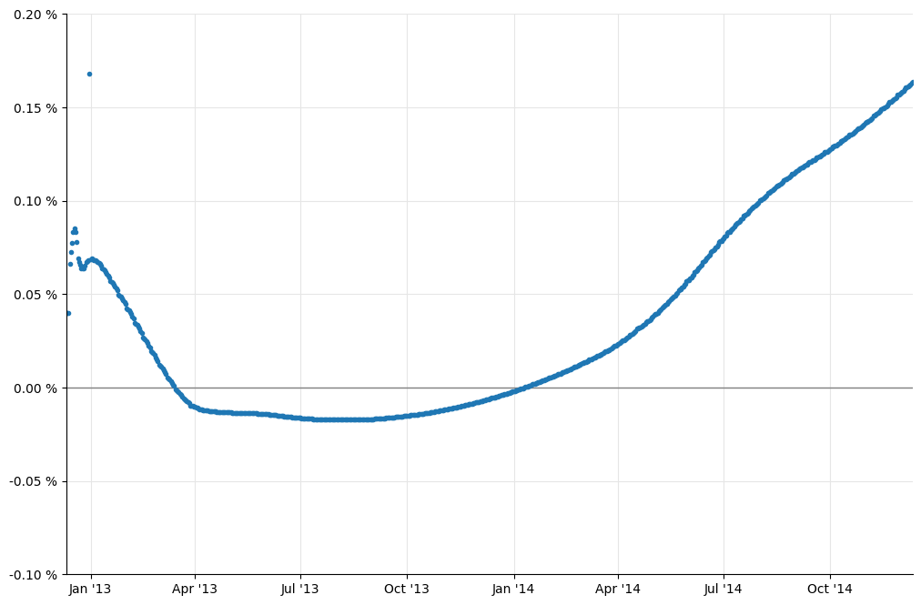 utils.plot_curve(ax, dates, [(rates,'.')], ymin=-0.001, ymax=0.002,