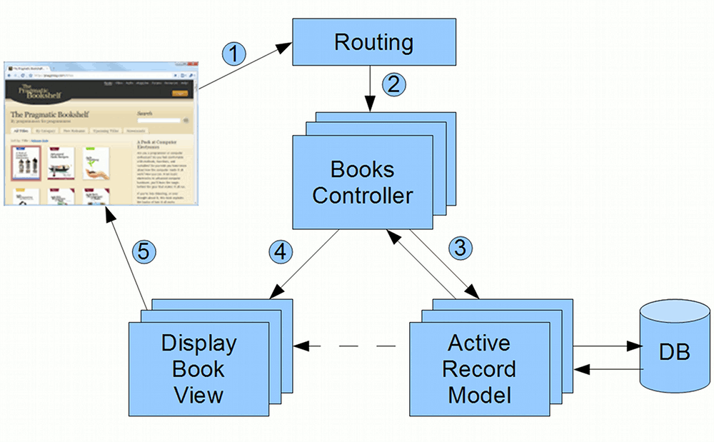 - Browser requests a page from the server e.g. http://my.url/books/123