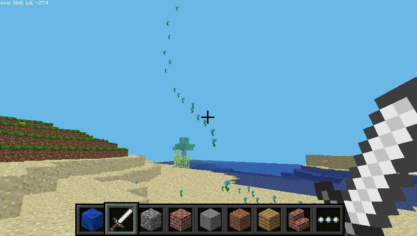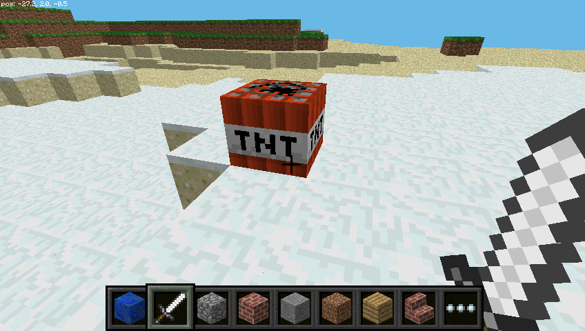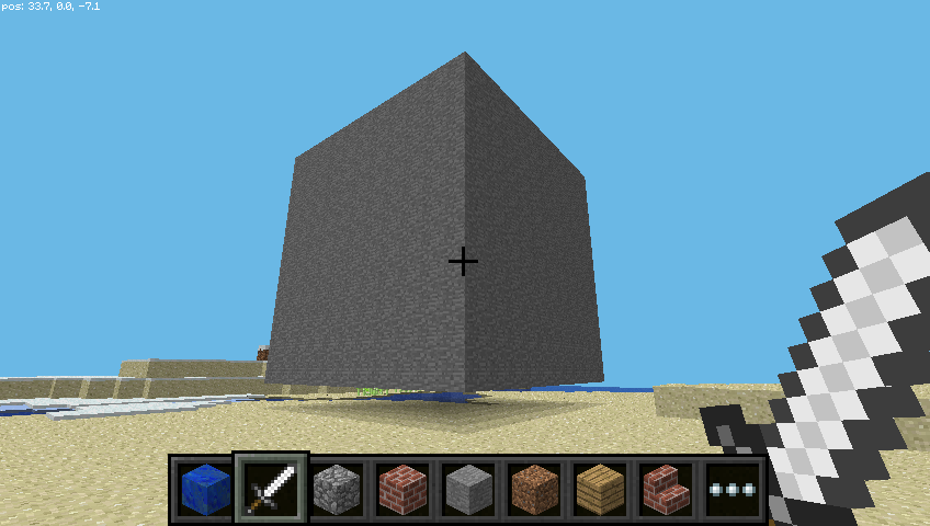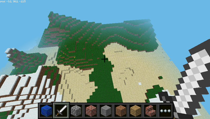 You are now in a game of Minecraft! Go walk around, hack things, and build things!