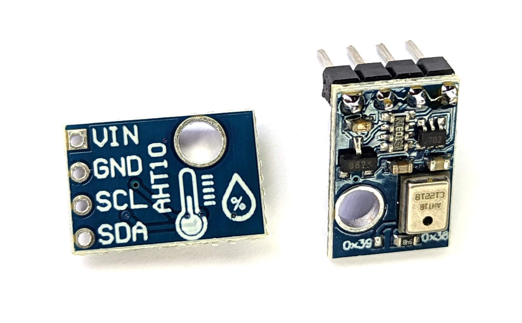 The AHT10 is an accurate temperature and humidity sensor in a very small package that can be accessed via an I2C interface. While it has a temperature measurement range of between -40°C and 85°C, its typical error of ± 0.3 is achieved between around 0°C and 55°C. Normal operating range for humidity is between 20 and 80% relative humidity. In that range it has a typical accuracy of ±2.