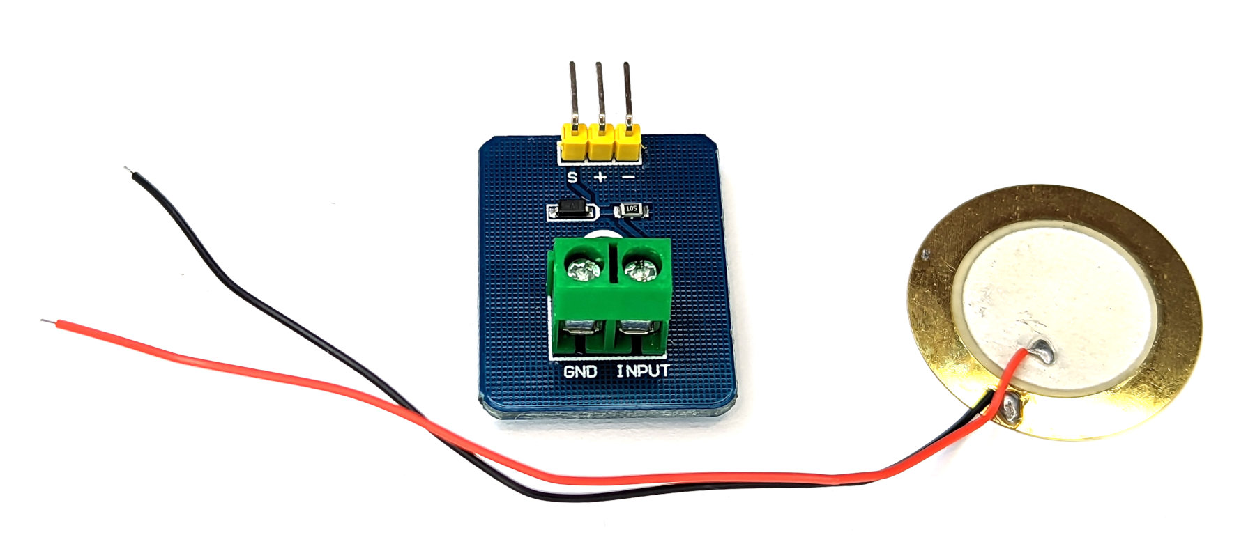 The unit that we will test comes in two parts. There is an interface board which incorporates two screw terminals which attach to the sensor proper.