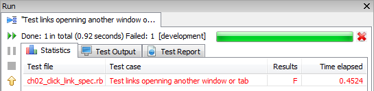 Once the installation (takes about 1 minute) is complete, we can run an RSpec test from the command line. You need to have some knowledge of typing commands in a console (Unix) or command window.