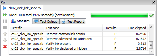 The below is a screenshot of the execution panel when all test cases in a test script file passed,