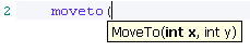 While typing the opening bracket after the moveto and lineto you will notice that the parameter list for the method is shown as balloon help.