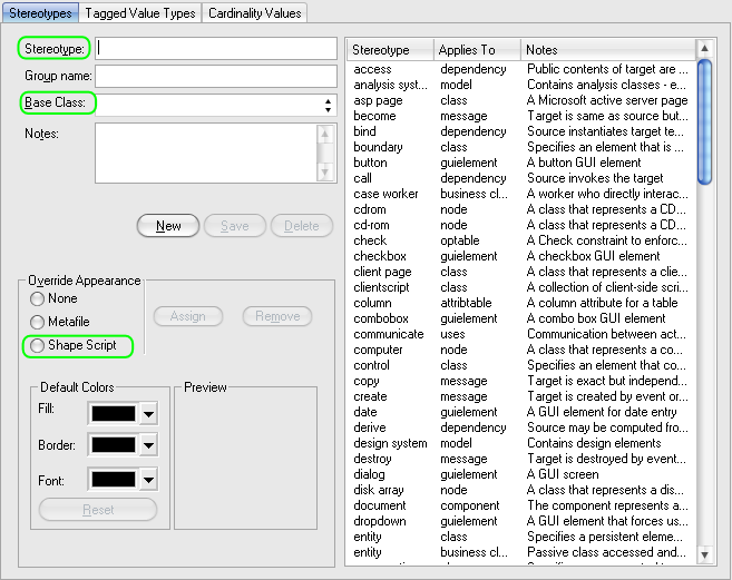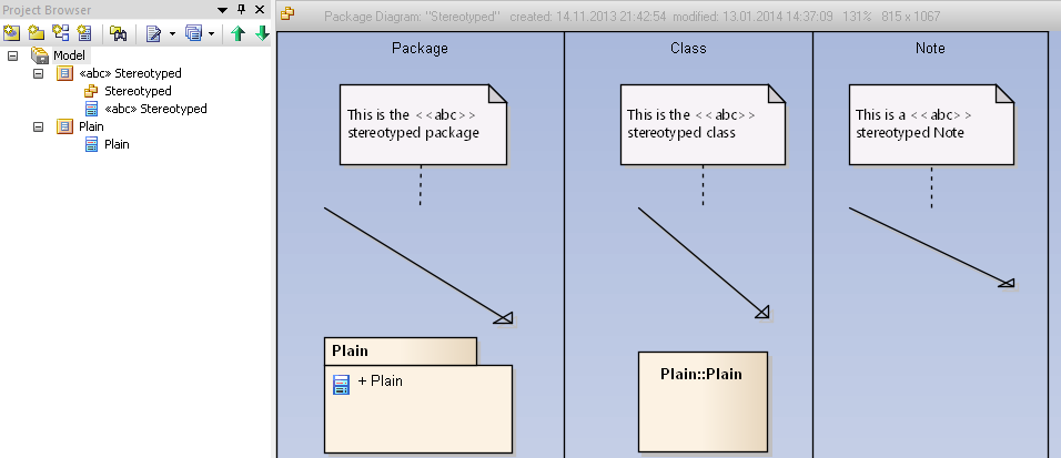Before going into details of the language itself let us try a simple example. Open Settings/UML Types/Stereotypes in any temporary Enterprise Architect repository you would like to use as sandbox.