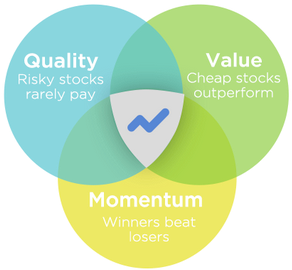 Academics and traders have shown that a share portfolio built using a blend of these principles has beaten the market over almost all time frames. James O’Shaughnessy, in his famous book “What Works on Wall Street”, showed that a portfolio of Trending Value stocks has been the best performing strategy over the last 40 years. Meanwhile the quants at AQR Capital have published astonishing research titled “Value and Momentum Everywhere” which illustrates the perpetual outperformance of the strategy. Not only does this blended approach outperform, but it does so at almost half the risk of using either strategy alone.