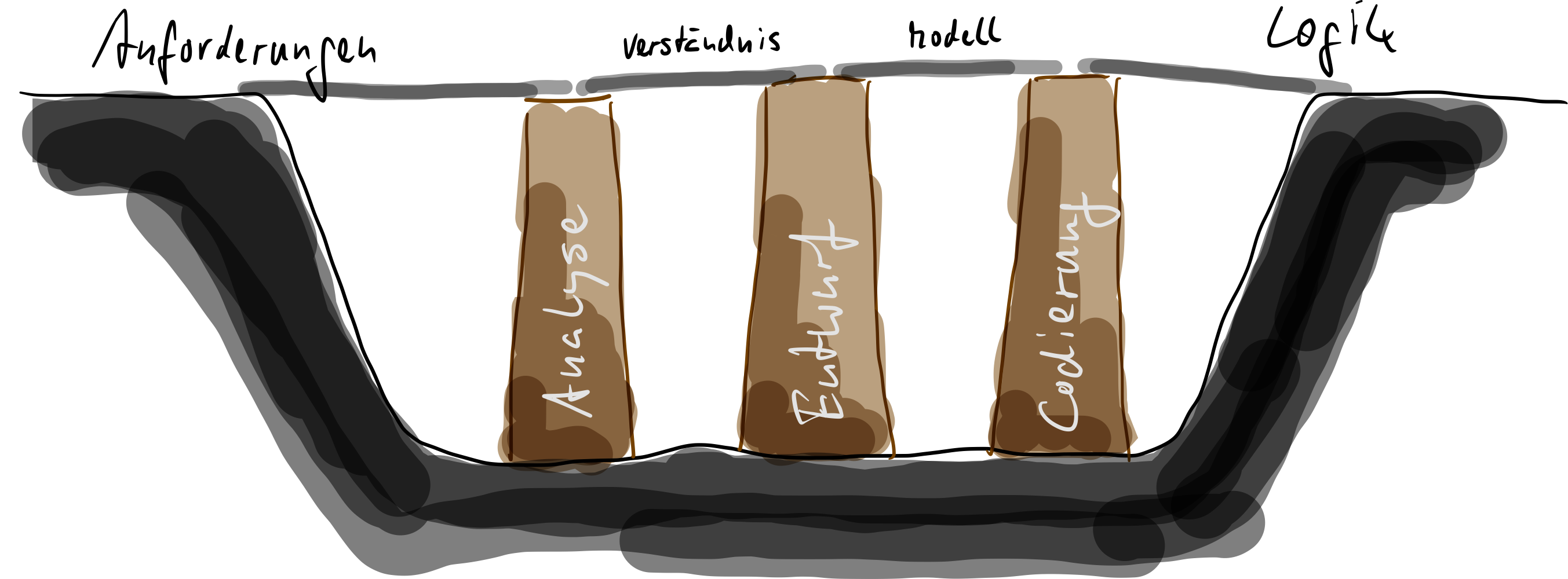 Konfrontiert mit Anforderungen ist die Softwareentwicklung aufgerufen, zunächst eine für sie relevante Analyse zu machen. Diese Analyse hat als Ziel, Verständnis zu erzeugen. Nur wenn du wirklich verstanden hast, solltest du dich auf den Pfad der Code-Entwicklung machen. Ansonsten ist zu befürchten, dass das Resultat keinen Wert hat und/oder inkorrekt ist.