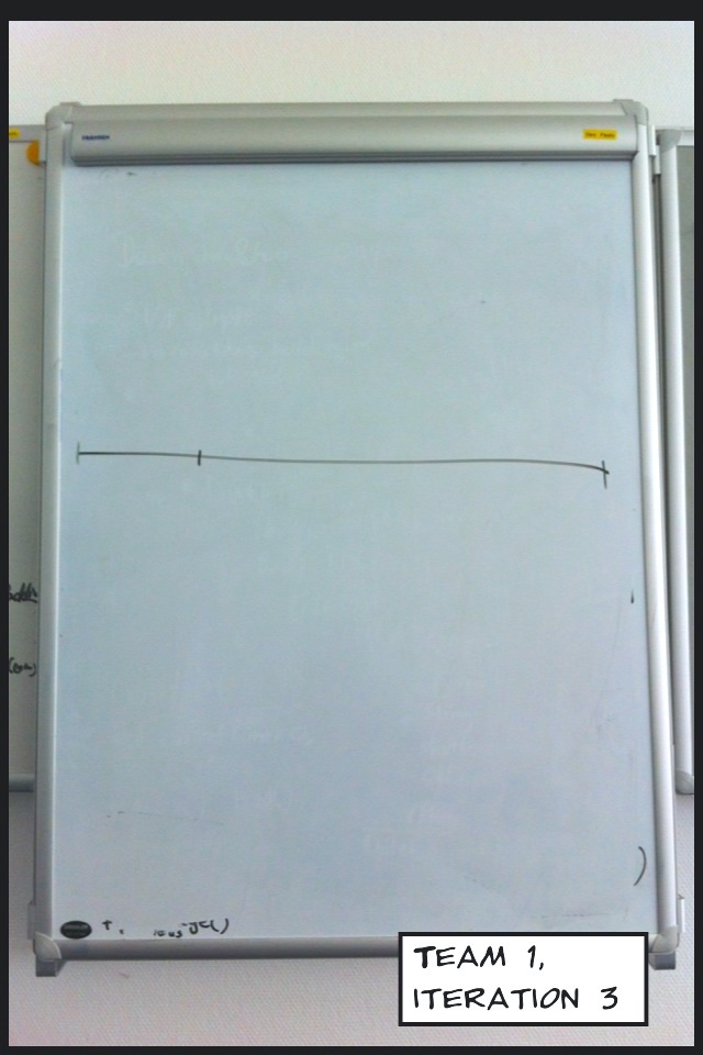 Aber auch wenn ich sage, dass es für den Lösungsansatz keine spezielle Form gibt, weil du möglichst frei sein sollst, deiner Kreativität Raum zu geben, gibt es Grenzen der Nützlichkeit. Hier ein Bild aus einem Clean Code Workshop. Diesen Lösungsansatz hatte ein Team am Whiteboard zurückgelassen, als es sich an die Codierung gemacht hat. Bei aller Offenheit für persönlichen Stil und individuelle Darstellungen ist mir das dann doch zu wenig.