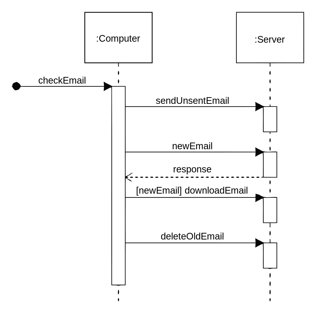 Die durchgezogenen Pfeile stellen “Funktionsaufrufe” dar. Im Bild ruft also der Computer den Server mehrfach auf im Rahmen der Lösung des Problems “check mail”.13