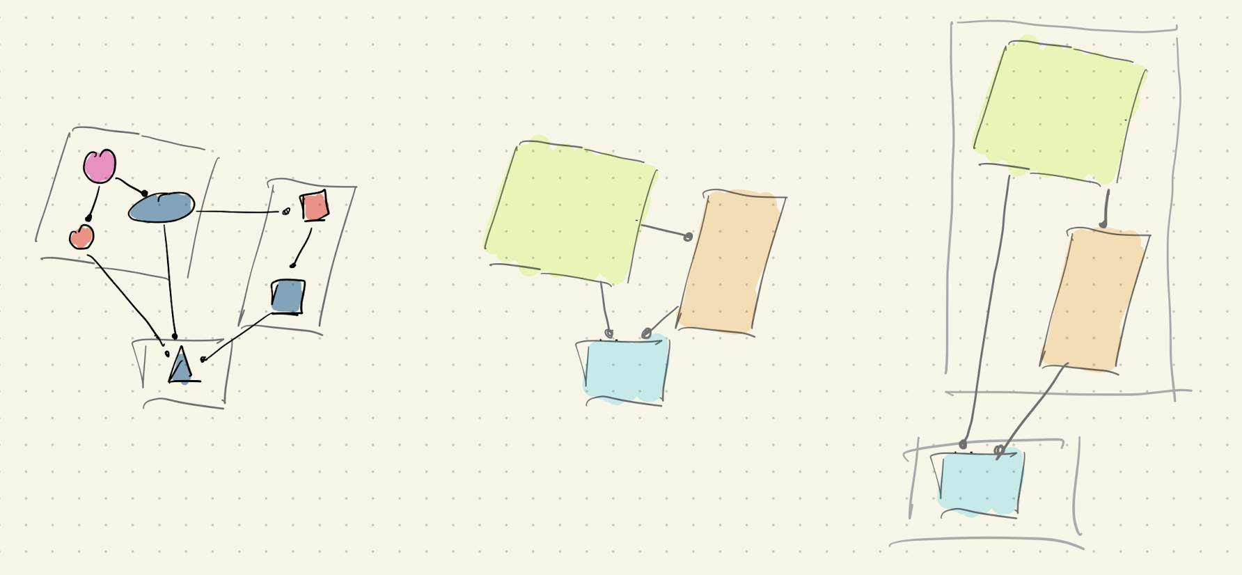 Vielleicht hast du eine ähnliche Idee gehabt für einen Lösungsansatz, vielleicht auch nicht. Wichtig ist nicht, dass er genau so aussieht wie meiner, sonder dass es überhaupt einen gibt. Jeder Lösungsansatz auf einem Blatt Papier (oder in einer iPad-App wie Notability oder GoodNotes) ist besser als keiner. Denn mit jedem aufgezeichneten, d.h. externalisierten, explizierten und visualisierten Lösungsansatz bist erstens du dir selbst klarer über die Lösung geworden und zweitens kannst du jetzt anfangen, den Lösungsansatz mit anderen zu diskutieren. Wenn du mit Kollegen das Problem angehst, dann hast du die Lösung auf einem Medium, das ihr teilt. Darauf könnt ihr beide schauen, daran könnt ihr beide arbeiten.
