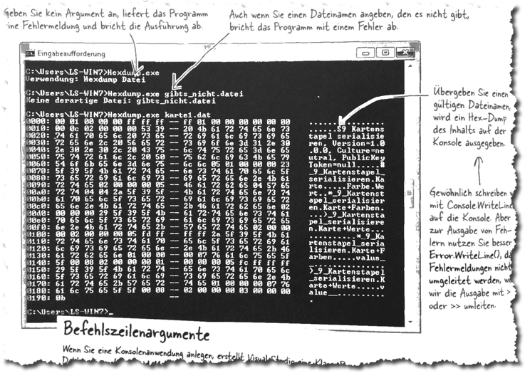 13 Console.Error.WriteLine ("Usage: hexdump <dateiname>");