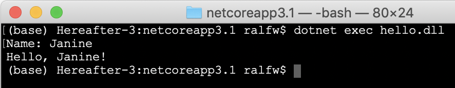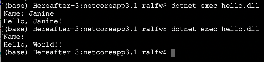 2 Console.WriteLine("Hello, {0}!", args[0]);