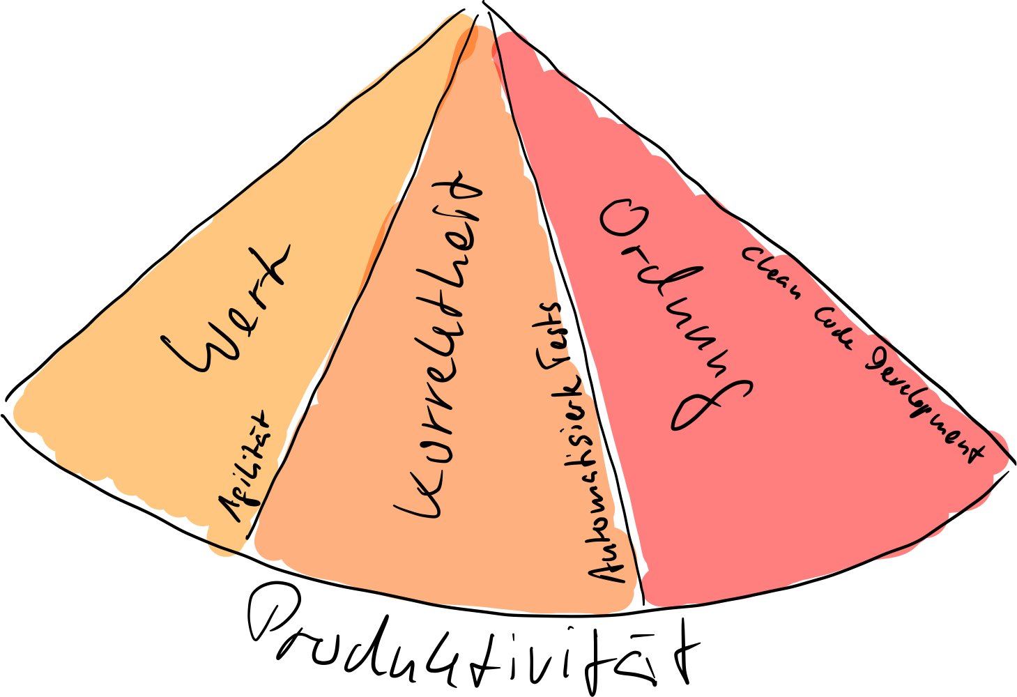 So verständlich es war, dass der Fokus von der Steigerung der Produktivität in Bezug auf den Wert von Software (in den 1990er Jahren) zur Steigerung der Produktivität durch Erhöhung der Korrektheit (in den 2000er Jahren) gewandert ist - so ist es andererseits auch verständlich, dass die Produktivitätssteigerung dann gegen eine gläserne Decke stoßen musste. Erst durch einen weiteren Wechsel des Fokus zur Ordnung (in den 2010er Jahren) kann nämlich die Behinderung aus dem Weg geräumt werden, die mehr Korrektheit und auch zügigerer Wertherstellung im Wege stand.