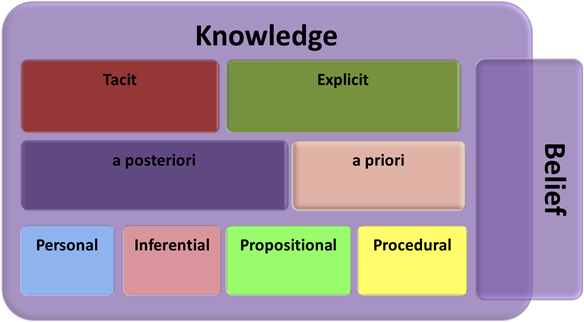 - Inferential knowledge: is based on reasoning. It is established though taking facts and/or theories and inferring something new. This knowledge may not be verifiable through either observation or testing but can be a powerful tool asset in supporting the decision making process.