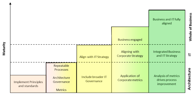 So often a business will recognise that work needs to be undertaken yet only matures some aspects of their operation, failing to complete and failing to reap the full benefits. Having an architecture function with its house in order is a good start. Architecture and IT are only part of the answer however, as the whole of business need also to be fully engaged and integrated.