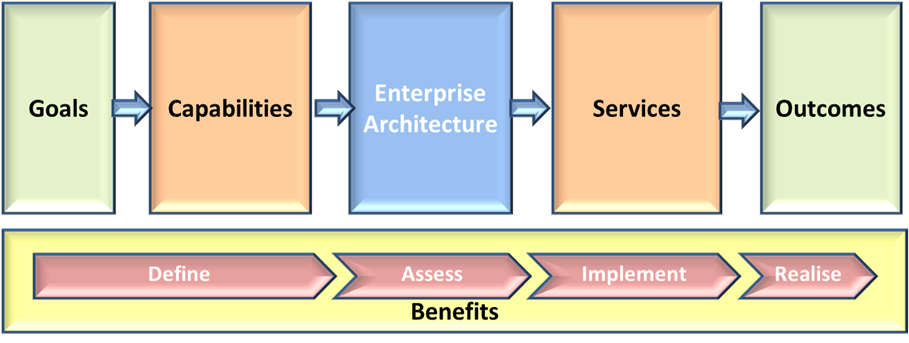 Successfully transitioning from business goals through capability development to service delivery provides business outcomes that provides the expected realisation of business benefits.