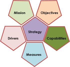 The Measures establish a quantitative basis from which relative success or failure of any strategic outcomes can be assessed whilst Capabilities describe what the business is either able or needs to be able to deliver.