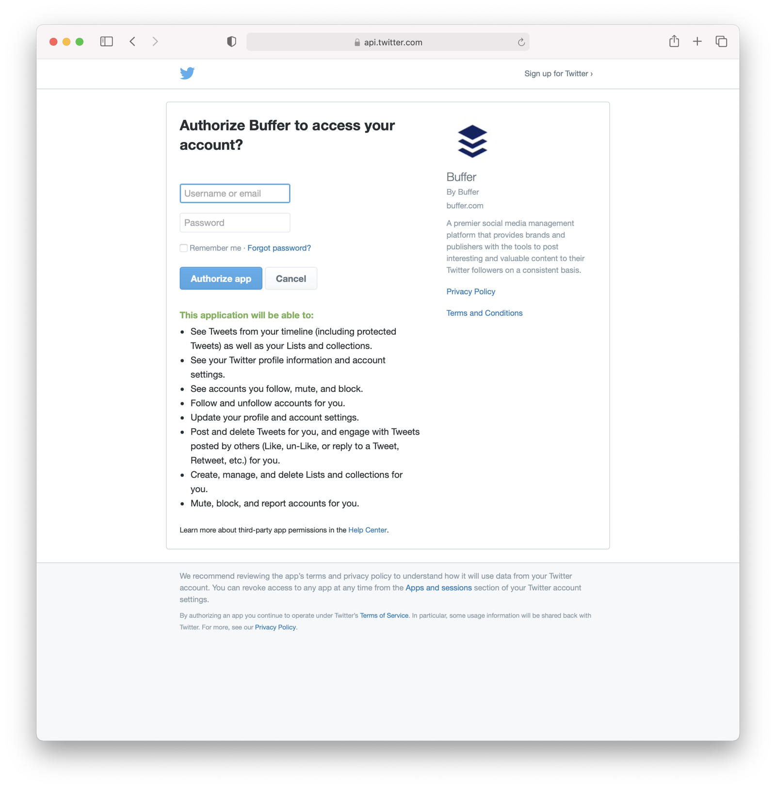 When you connect a Twitter account to Buffer, you’ll see a screen like this: