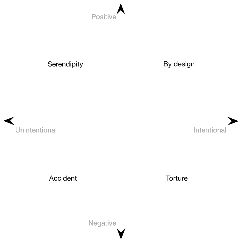 Imagine a chart. The X-axis goes from unintentional to intentional. The Y-axis goes from positive to negative.