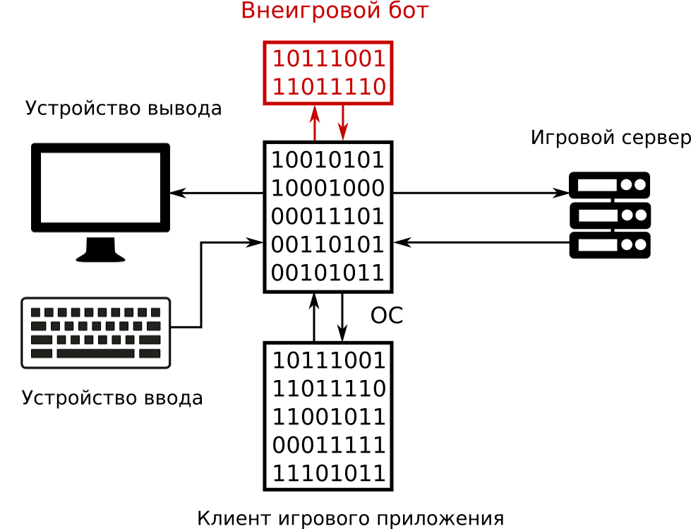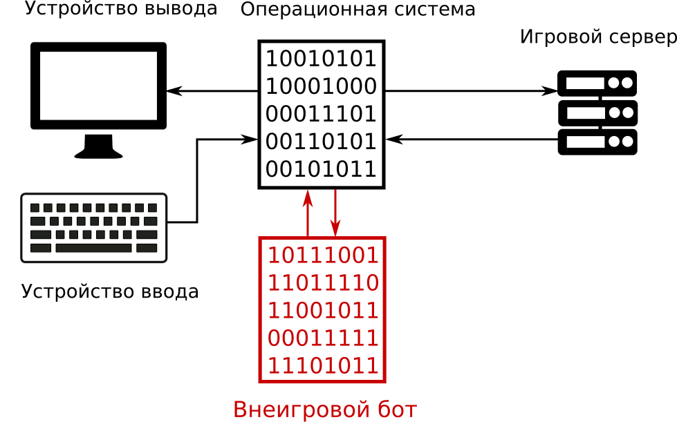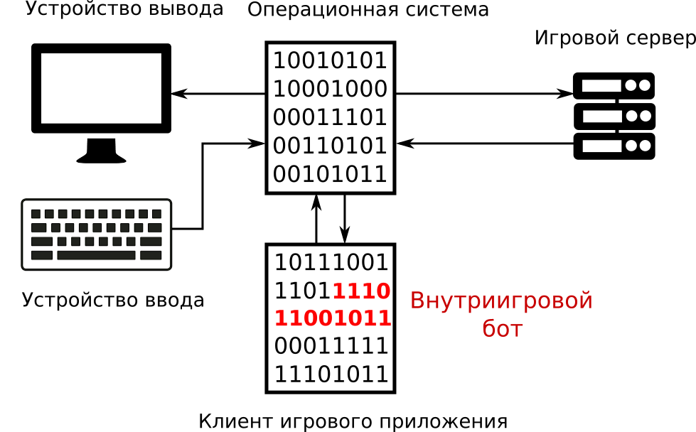 Изучая информацию о ботах в Интернете, вы наверняка встретите термины внутриигровой (in-game) и внеигровой (out-game). Они широко используются и означают виды ботов, которые хорошо знакомы сообществу игроков. Основа для такой классификации – это способ взаимодействия с игровым приложением.
