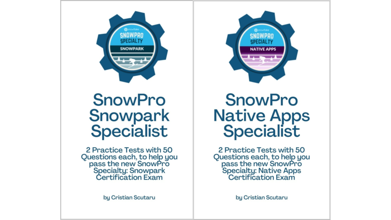 This contains two high-quality practice tests of 50 questions each, to help you become certified as a SnowPro Snowpark Specialist, passing the new online proctored certification exam.