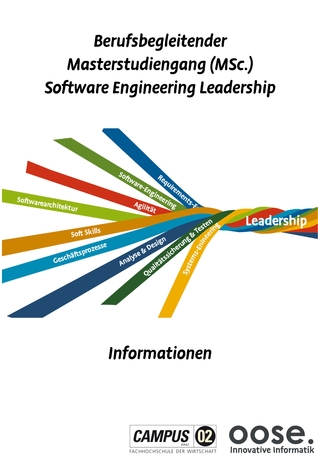 Die Informationsbroschüre präsentiert Informationen zum berufsbegleitenden Masterstudiengang Software Engineering Leadership. Das sind im Wesentlichen die Vortragsfolien der regelmäßigen Informationsveranstaltungen zum Studiengang sowie die FAQ.