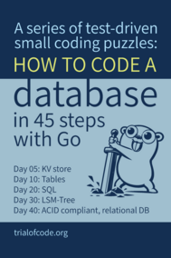 This series of test-driven small coding puzzles lets you code a database from scratch (no dependencies).We'll cover KV storage engines, LSM-Tree indexes, SQL, concurrent transactions, ACID, etc.
