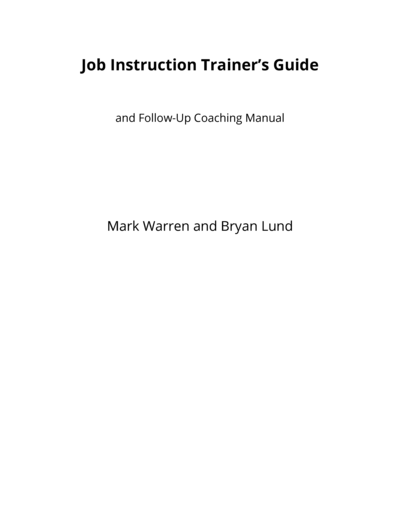 Job Instruction Trainer's Guide