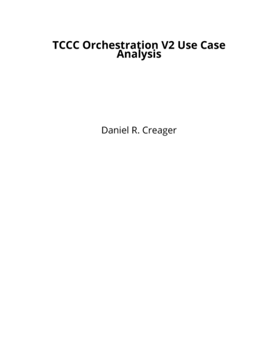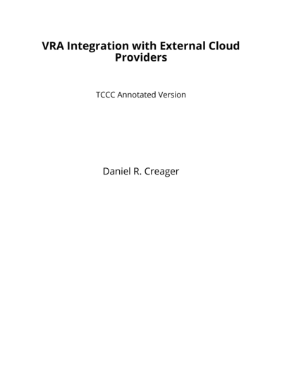 Unpublished BooksVRA Integration with External Cloud ProvidersDaniel R. CreagerTrader's Handbook and Quick ReferenceDaniel R. CreagerTCCC Orchestration V2 Use Case AnalysisDaniel R. CreagerTAVEUNICompiled by Daryl Tarte