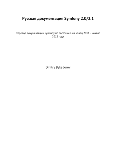 Published BooksОдин год с SymfonyDmitry Bykadorov and Matthias NobackРусская документация Symfony 2.0/2.1Dmitry Bykadorov