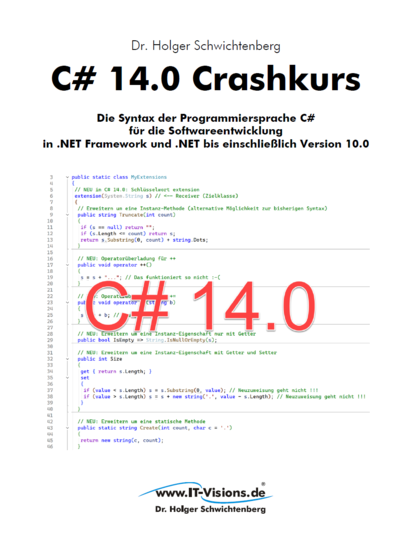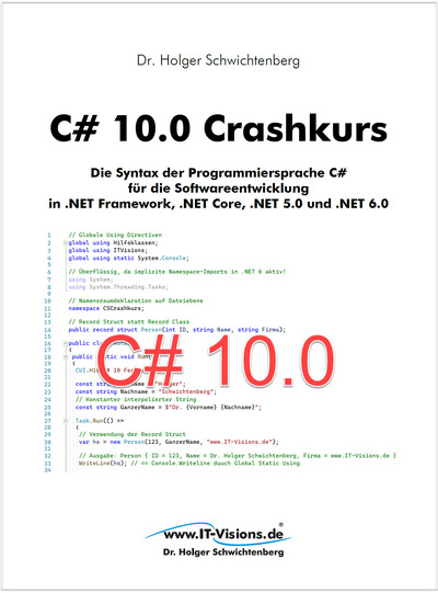 Dr. Holger Schwichtenberg - alias der "DOTNET-DOKTOR" - ist technischer Leiter des Expertennetzwerks www.IT-Visions.de, das mit 54 renommierten Experten zahlreiche mittlere und große Unternehmen durch Beratungen und Schulungen sowie bei der Softwareentwicklung unterstützt. Seine persönlichen Tätigkeitsschwerpunkte sind Webanwendungen, verteilte Systeme, systemnahe Programmierung und Datenbankzugriffe. Er programmiert leidenschaftlich in C# und JavaScript/TypeScript sowie PowerShell.