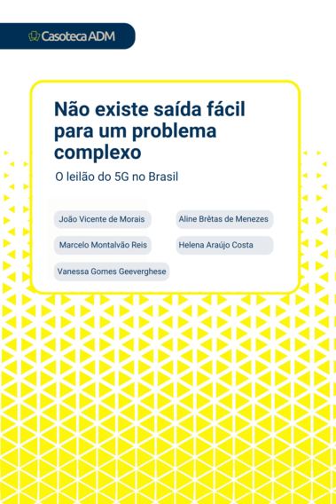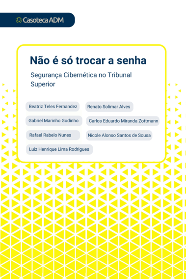 Unpublished BooksGrupo Alfa e a transformação digital de um programa de capacitação em tempos de pandemiaCasoteca ADMNão existe saída fácil para um problema complexo: o leilão do 5G no BrasilCasoteca ADMNão é só trocar a senha: Segurança Cibernética no Tribunal SuperiorCasoteca ADMCasos de ensino: gestão de problemas e soluções em AdministraçãoCasoteca ADM