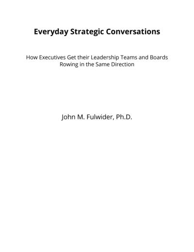 Professional communicator John Fulwider helps nonprofit chief executives advance their strategic visions through everyday conversations. Combining coaching, teaching, and training, John works exclusively with high-achieving CEOs who want their leadership teams and boards rowing in the same direction. He is a sought-after speaker and the not-yet-bestselling author of five books, including Better Together: How Top Nonprofit CEOs and Board Chairs Get Happy and Fall in Love (with the Mission) and Everyday Strategic Conversations: How Top Nonprofit CEOs Get Their Teams and Boards Rowing in the Same Direction.