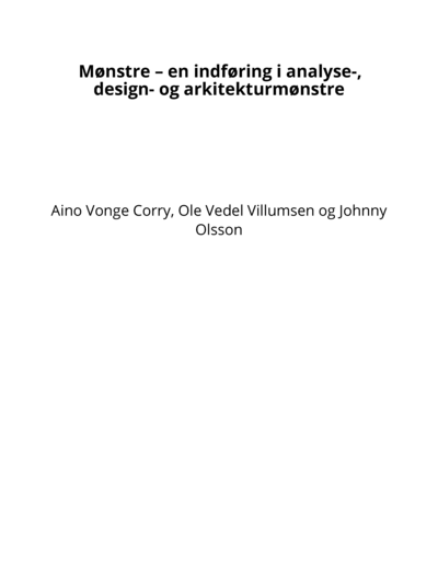 Published BooksMønstre – en indføring i analyse-, design- og arkitekturmønstreAino Vonge Corry, Ole Vedel Villumsen, and Johnny Olsson