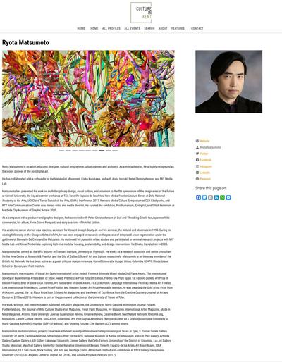 Published BooksAn Interview with Architect: Ryota Matsumoto - Art, Architecture, and Technology | Culture in KentJulik SamuelThrough the Eyes of Ryota Matsumoto | Art by Nature Number 4 2016Julik SamuelInterview with Ryota matsumoto ARTiculAction Art Review March20 2015Julik SamuelRyota Matsumoto Conversation Visual Commentaires on Contemporary Speculative Changes KooZA/rch April 2017Julik Samuel