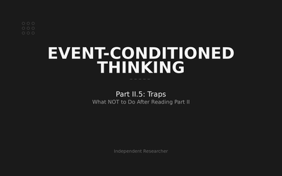 Published BooksEvent-Conditioned Thinking: Part II.5 — TrapsSon PhamEvent-Conditioned Thinking: Part I — AuditSon PhamEvent-Conditioned Thinking: Part II — Design PressureSon PhamEvent-Conditioned Thinking: Complete FrameworkSon Pham