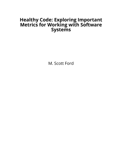 Unpublished BooksHooked on TestingM. Scott FordRefactoring EnglishAndrea Goulet and M. Scott FordHealthy Code: Exploring Important Metrics for Working with Software SystemsM. Scott Ford