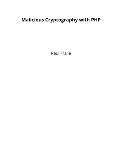 Unpublished BooksMalicious Cryptography with PHPRaul FrailePHP Certification. Self-study guideRaul FraileSymfony CertificationRaul Fraile