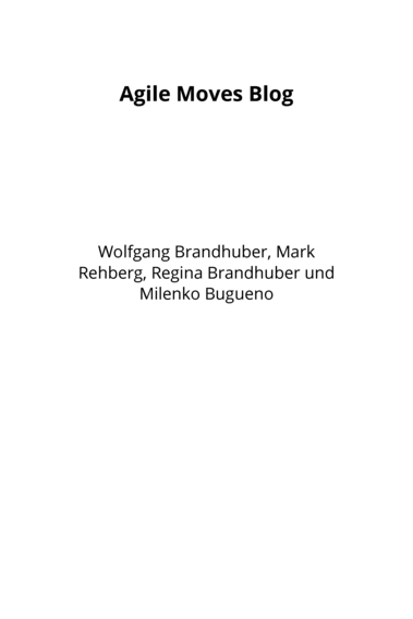 Unpublished BooksMusic MovesRegina Brandhuber, Silke Kainzbauer, Mark Rehberg, Milenko Bugueno, and Wolfgang BrandhuberAgile Moves BlogWolfgang Brandhuber, Mark Rehberg, Regina Brandhuber, and Milenko BuguenoTeamspiel ÜbenRegina Brandhuber