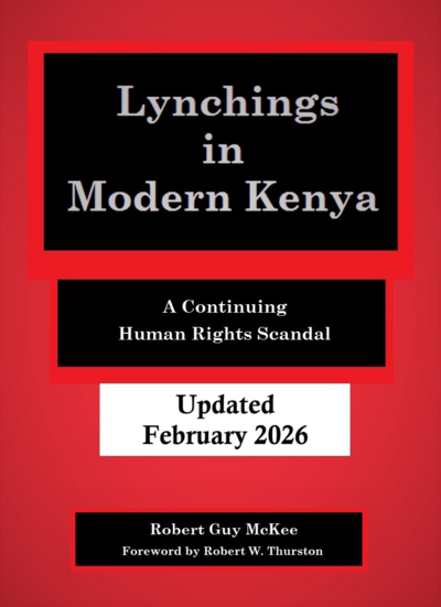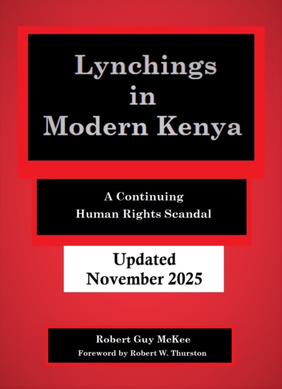 Besides lynchings in Kenya, Rob's professional interests include Mangbetu linguistics and anthropology, Christian anthropology, tale analysis, subtitles in ethnographic film, and more. He has published several Mangbetu linguistics papers (e.g., "Concerning Meegye and Mangbetu's Bilabial Trills"); his anthropology dissertation was on Meegye-Mangbetu death compensations as intergroup rites of passage. He has published two other Leanpub books—namely, Destination: Christian Anthropology (2022) and "Let's Understand Each Other!": Meegye-Mangbetu Death Compensations in the Forest of Alliances (2023).