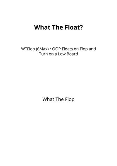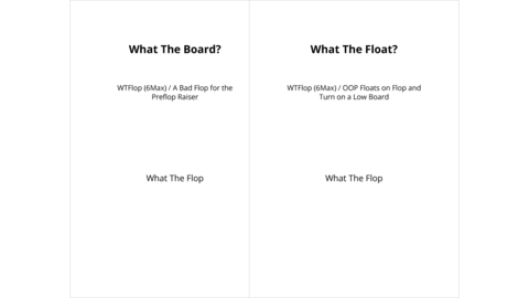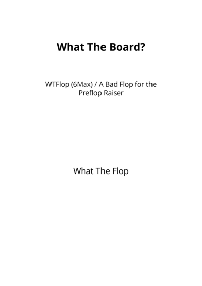 Published BooksWhat The Float?What The FlopWhat The CheckRaise?What The FlopWhat The Board?What The FlopWhat The 3Bet?What The FlopWhat The River?What The FlopWhat The Defend?What The Flop