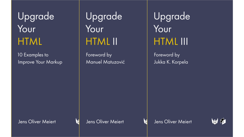 HTML is super-popular. Everyone can write HTML. Or can they? In the spirit that everything can be tweaked and optimized, Upgrade Your HTML is a first light book in a playful series to review and improve real-life examples of HTML.
